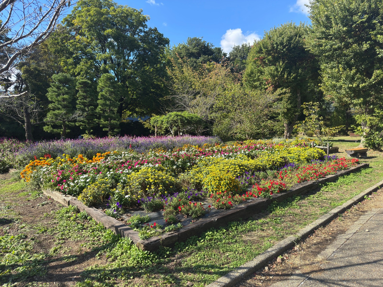 花壇の花がきれいに咲いています。 |